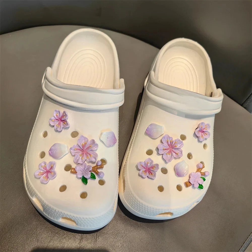 3D Cherry Flowers Set Shoe Charms Clogs Accessoriess DIY Slide Sandals Garden Shoe Decor Buckle Beach Bag Pins Girls Women Gifts